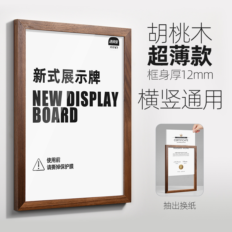 速销宝 8561 A4 沙比利木款 带支架 横竖通用 圆角 实木相框
