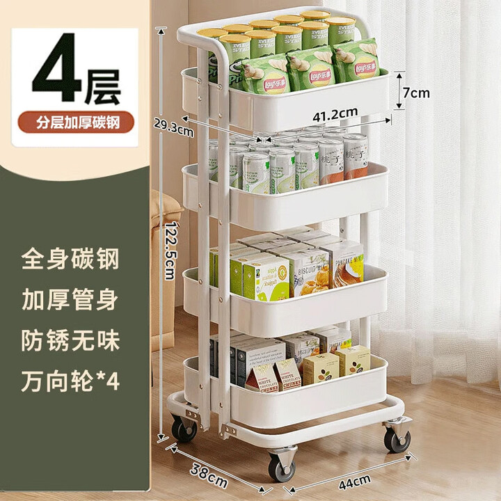 溢彩年华 1077 43*36*87cm 3层 白色 带把手款 金属带轮置物架