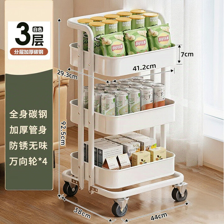 溢彩年华 1077 43*36*87cm 3层 白色 带把手款 金属带轮置物架