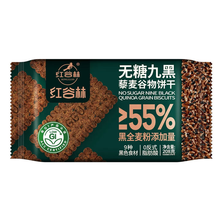 红谷林 208g/袋 独立包装 无糖九黑 藜麦谷物饼干