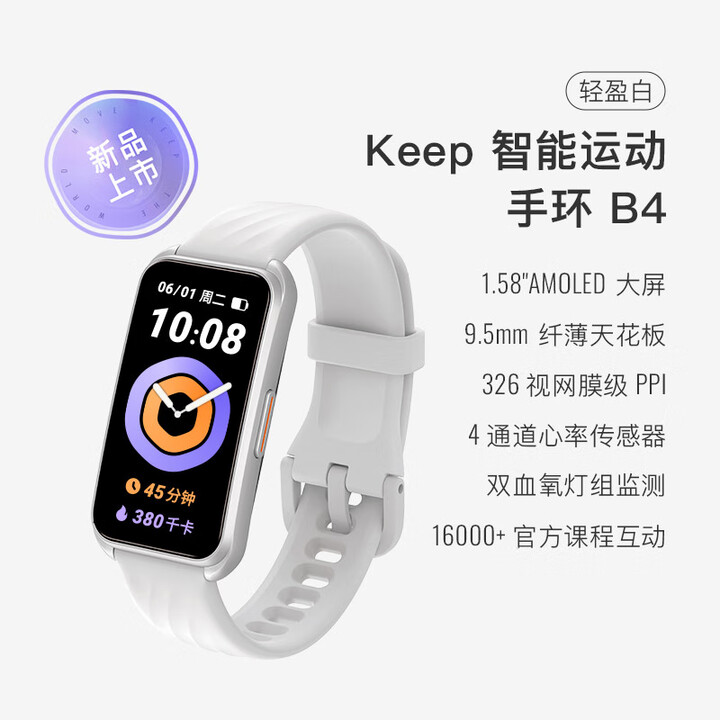 Keep 1.58英寸OLED屏 白色 智能运动手环B4