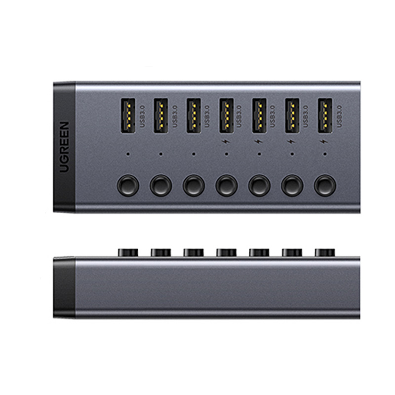 绿联Ugreen 30778 线长1米 7口USB3.0 黑色 单控带电源 分线器
