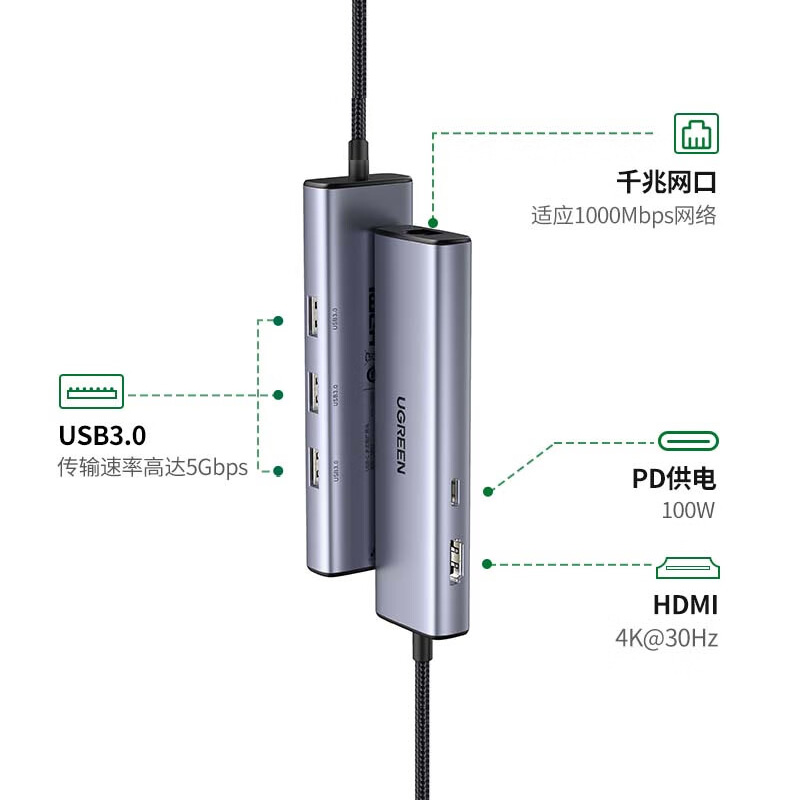 绿联Ugreen 15598 Type-C 六合一 多功能转换器/扩展坞