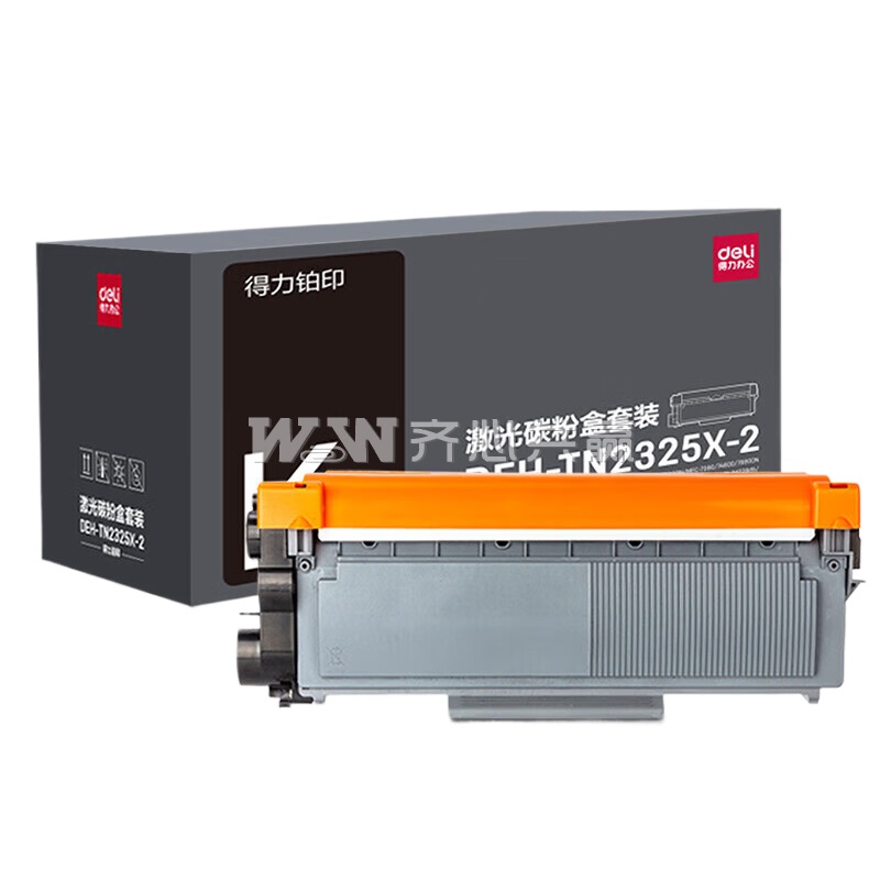 得力Deli 铂印 DEH-TN2325X-2 2支/套 2800页 大容量 带芯片 黑色 激光碳粉盒套装
