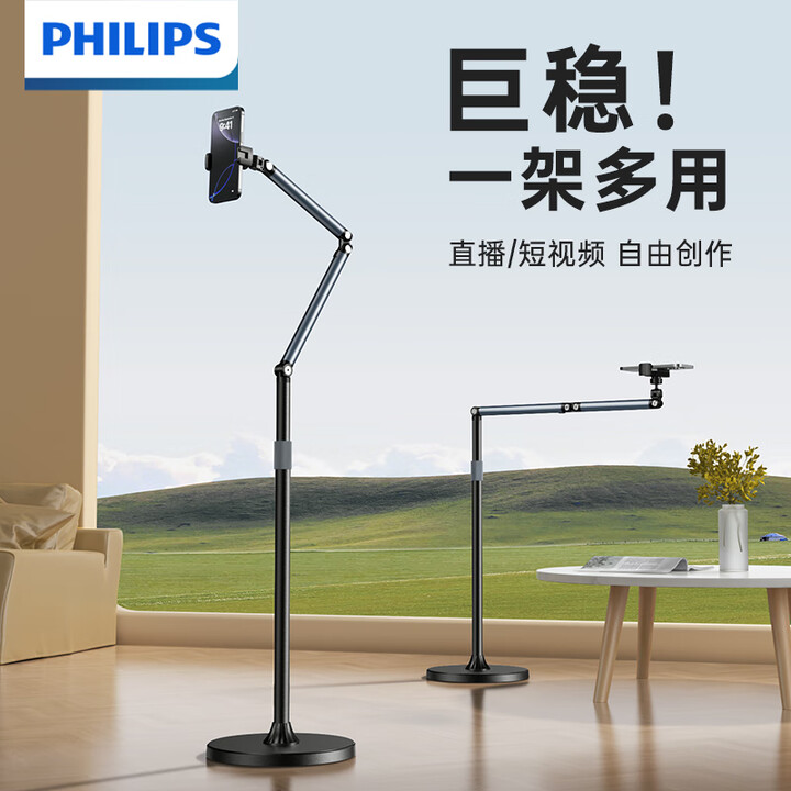 飞利浦Philips DLK2322B/93 高:160cm 适用:6.5英寸内 万向落地伸缩手机支架