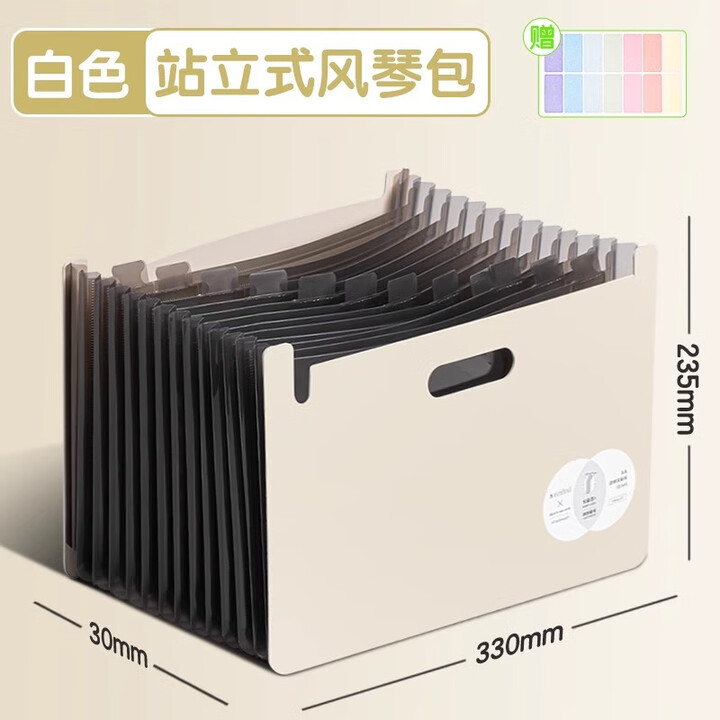 得力Deli PM101 A4 13格 米白色 发泡PP站立式风琴包