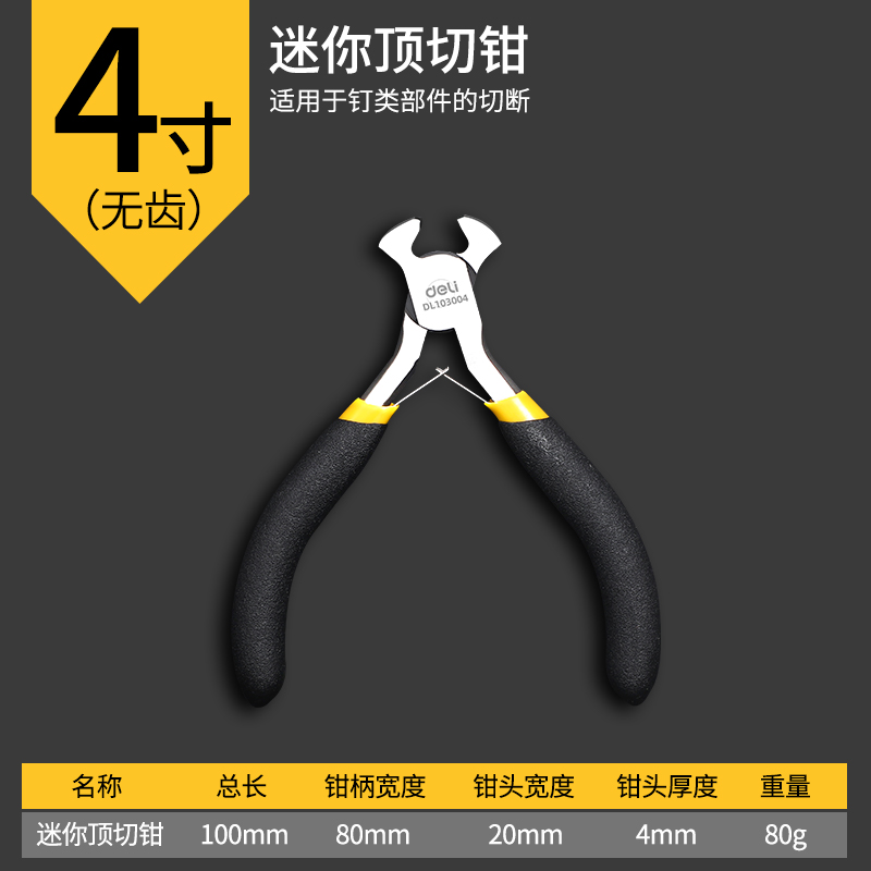 得力Deli DL103004 4寸 黄黑沾塑柄 迷你顶切钳