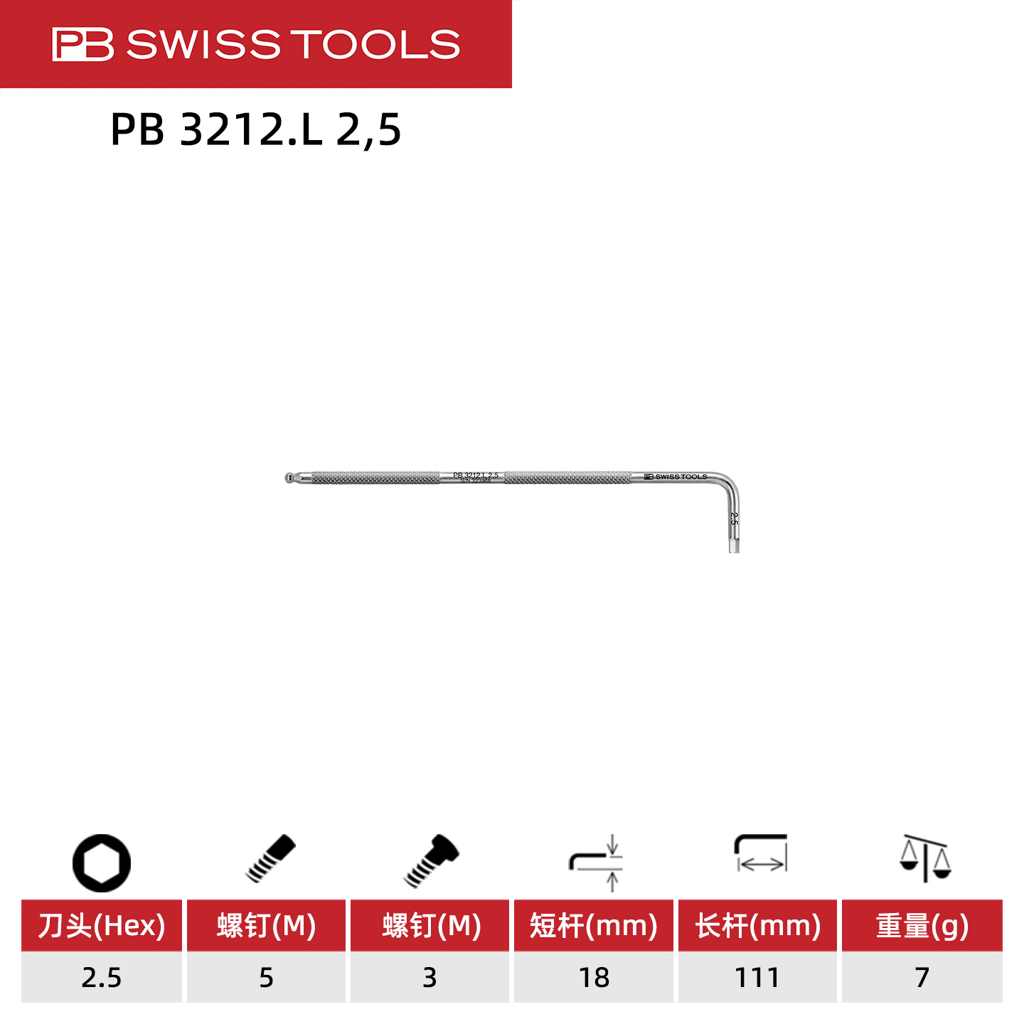 PB Swiss Tools PB 3212.L 2.5mm 滚花式 L型内六角扳手