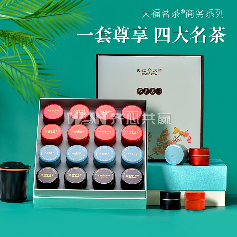 天福茗茶 134g/盒 内含16罐 金骏眉红茶/正山红茶/白牡丹白茶/普洱茶各4 茶和天下礼盒