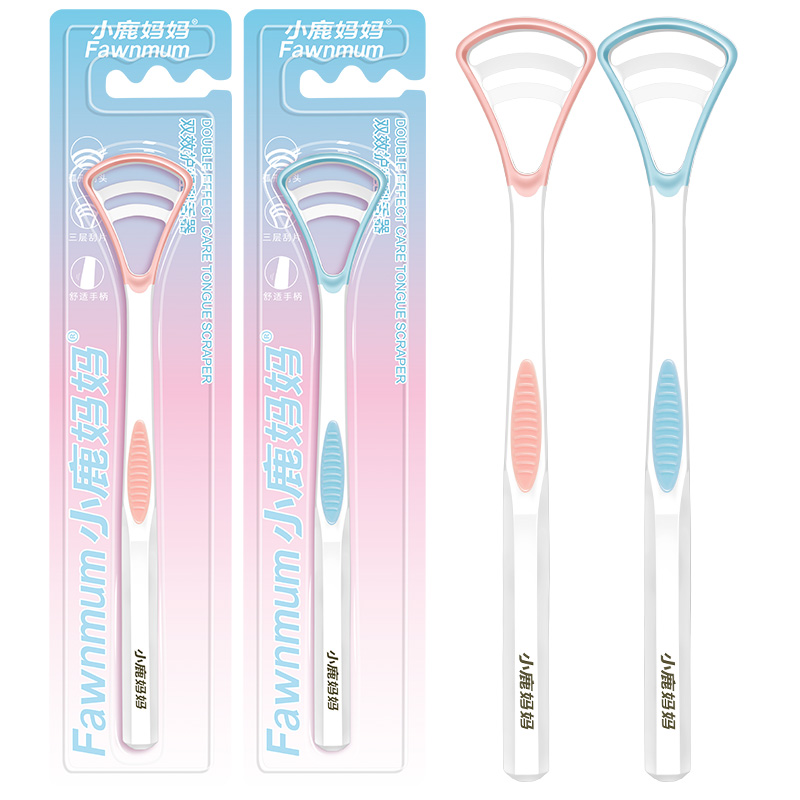 小鹿妈妈 3支/组 刮/刷双面 3层舌刷 双效护理刮舌器/舌苔清洁器