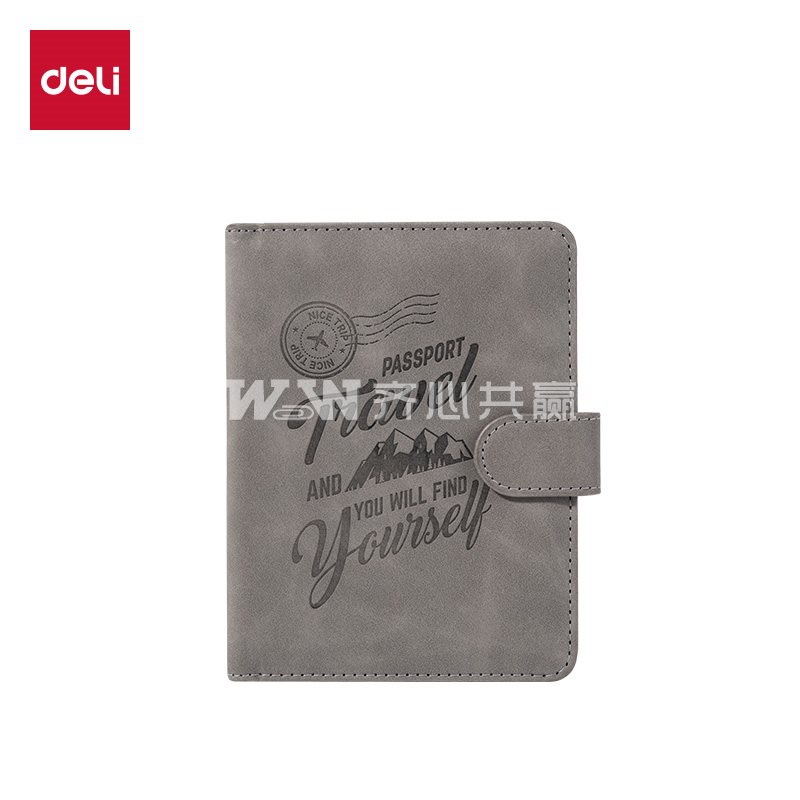 得力Deli BA225 110*145mm 灰色 磁吸搭扣 PU皮证件卡收纳包